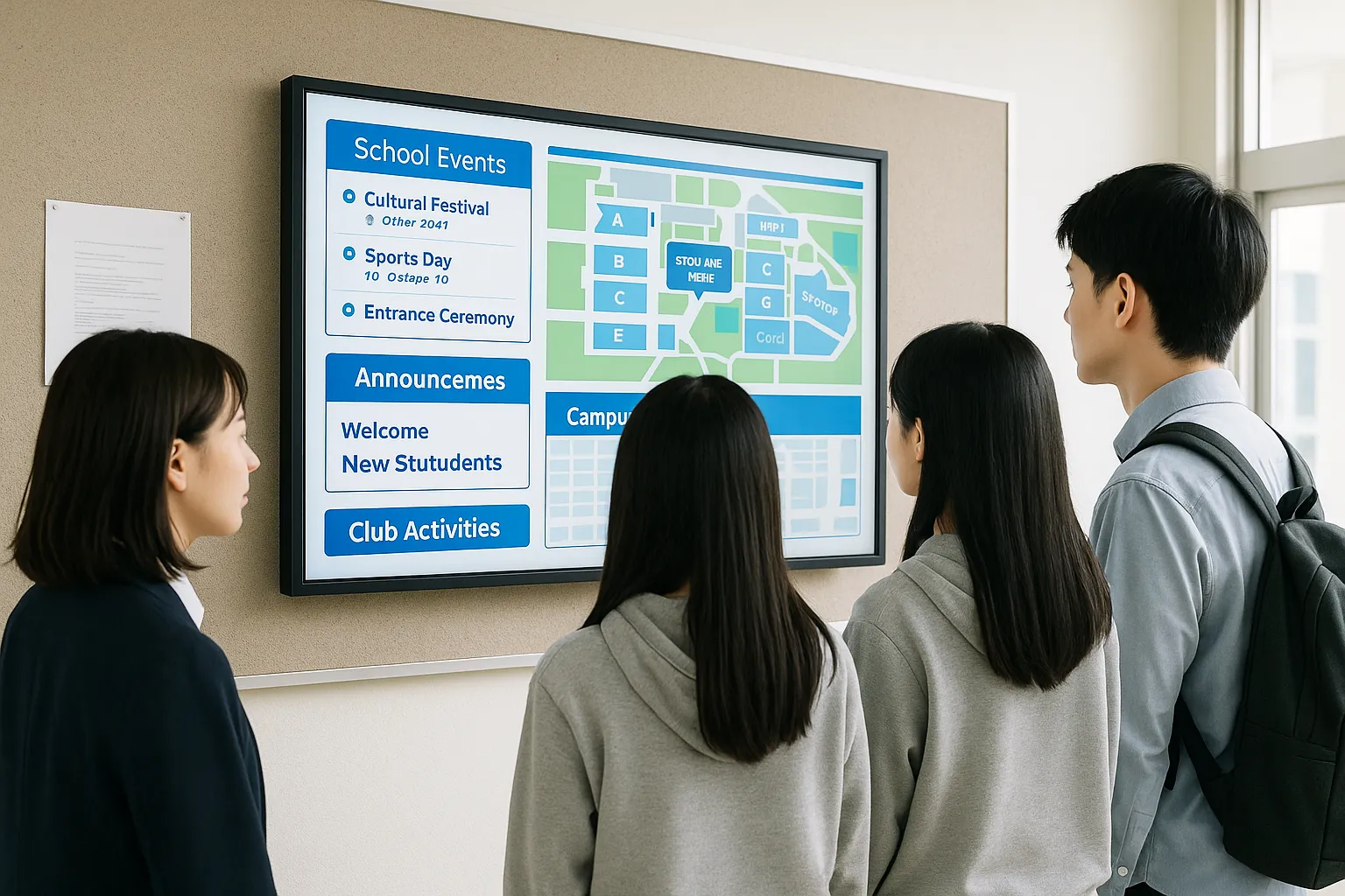 教育現場で求められる“わかりやすさ”と“安心感”をサイネージでサポート。